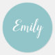 Elegant Light Turquoise Blue Script Cursive Name Classic Round Sticker