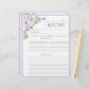 Designed to accompany our matching Bridal Shower Recipe Binder, part of a matching Bridal Shower Invitation Suite, this pretty recipe card features luxurious combination of pretty rose watercolor florals, in trendy lilac lavender color theme. Classic elegance with a modern twist, incorporating hand written calligraphy, and elegant serif typography. There are plenty of lines for the recipe, and the back matches the front, so each guest can give the bride two recipes. A margin has also been left on the page to accommodate the margin. CLICK HERE for the coordinating Recipe Binder: https://www.zazzle.com/elegant_lilac_lavender_floral_bridal_shower_recipe_3_ring_binder-256545886977719342 View entire suite here: https://www.zazzle.com/collections/elegant_lilac_lavender_floral_bridal_shower-119730120254921497 Contact designer for matching products. Copyright Anastasia Surridge for Elegant Invites. All rights reserved.