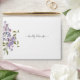 Complete your wedding stationery with this beautifully designed lilac envelope featuring your return address in an elegant script. The soft lavender hue provides a stunning backdrop for your invitations, while the delicate watercolor floral accents in shades of purple, blue, and green add a romantic touch. Fully customizable, you can adjust the font styles and sizes to coordinate with your wedding theme. Elevate the unboxing experience and create a cohesive look that impresses when your guests receive their invitations.
