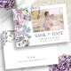 Announce your wedding with timeless elegance using this save-the-date card, featuring a delicate side bouquet of hand-painted watercolor lilacs in dreamy lavender, purple, and blue, accented with lush greenery. The front beautifully highlights your engagement photo, making it a personal and heartfelt keepsake for your guests. On the back, a refined monogram and your wedding website ensure all the important details are easily accessible. Customize the wording, font styles, and sizes to make it uniquely yours. It is a perfect way to build excitement and set the tone for your special day.