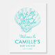 Welcome guests to your dreamy seaside celebration with this blue teal Little Beach Babe Baby Shower Welcome Sign. A perfect touch for your beach-themed baby shower. Personalize with your details for a stunning first impression.