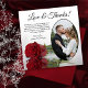 These beautiful wedding thank you cards are a wonderful way to show your appreciation to your friends and family for celebrating with you on your special day. They feature your wedding photo in an oval shaped frame with a single long stemmed red rose lying on its side reflecting in water. The title reads "Love & Thanks" with room for a custom note and signature. Classy, romantic, and sophisticated, these cards are the perfect way to conclude your wedding celebration.