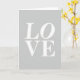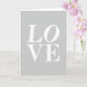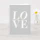 This greeting card features the word “LOVE” as the main image, set large and centered so it fills most of the front. The letters are crisp white with a classic serif look, giving the design a calm, steady presence that feels like a quiet promise between two people ❤️. “LO” sits on the top line and “VE” rests directly beneath it, creating a neat stacked layout that draws your eyes downward. With no characters or scenery, the focus stays on the closeness suggested by the letters leaning into a shared space, like two partners standing shoulder to shoulder 🥰. The background is a smooth, uniform light grey, keeping the mood soft and understated. There’s no extra decoration, just the strong contrast of white text against grey, which makes the message easy to read from a distance. The serifs have slightly rounded ends, especially on the “L” and “V,” adding a gentle softness to the otherwise structured shapes.
