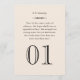 Pair your favorite love quotes with your table numbers for a beautifully literary reception detail. This elegant design features a custom author name and quote in refined serif typography, framed by a thin border with a bold oversized table number below. A warm cream background adds a timeless, romantic feel. Fully customizable with your chosen quotes and numbering. Please note, each table number must be individually personalized and added to your cart one at a time.