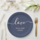 Elegant Love Script Navy & Blush White Wedding Paper Plates