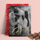 Elegant Valentine's Day card featuring your vertical photo with "Love" displayed in a gold foil calligraphy script. Personalize the photo Valentine's Day card with your custom greeting and family name. The foil Valentine's day card reverses to display a red and white heart pattern.