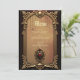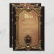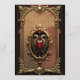 Elegant luxurious heart emblem.The design features an ornate, arched golden frame against a gradient brown background. The frame is highly detailed with baroque-style flourishes. Hanging from the top of the arch are delicate golden chains with teardrop pendants. At the bottom center, a smaller, similarly styled golden frame displays a red heart emblem flanked by winged serpents. The overall mood is luxurious and decorative.