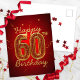 The design? Picture a radiant red backdrop sprinkled with shimmering gold confetti—like the grand finale of a fireworks display, bursting with joy. Center stage is a striking golden "60," adorned with dazzling red gem-like accents that catch the light and hearts alike. Above and below the numbers, the phrases “Happy” and “Birthday” are beautifully scripted in gold, as if penned with the warmth of sunlight. And to top it off, the "TH" in the corner completes this milestone in style.