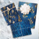 Elegant Luxury Blue Gold Christmas Holiday Wrapping Paper Sheets