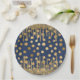 Pretty gold and blue paper plate with gorgeous faux rhinestones adding that sparkle to dress this up for elegant occasions. Perfect for birthdays, bridal showers, weddings, rehearsal dinners.