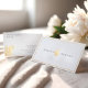 This elegant, luxury card features a clean, minimalist layout accented by a beautiful faux-gold line border and delicate floral and leaf illustrations. The reverse side showcases a coordinating faux-gold floral graphic in the corner, paired with a refined, modern display of your contact details.
