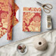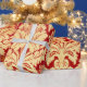 Stunning elegant red and gold French damask floral fabric-textured print is on this holiday, Christmas, birthday, wedding gift wrapping paper.