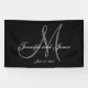 Personalize your wedding reception with this elegant monogrammed wedding banner. An elegant gray script "M" monogram initial on a solid black background color, with your bride and groom names and wedding date in a white script font. You can customize the colors and text. For other monogram letters please contact store ownerWe would be glad to help.