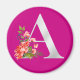 Elegant Magenta Metallic A Floral Monogram Magnet