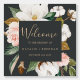 This elegant magnolia black and white welcome wedding foam board is perfect for a modern classy wedding. The moody floral design features watercolor blush pink peonies, stunning white magnolia flowers and cotton with gold and green leaves in a luxurious arrangement on a dark background. Customize the sign with the name of the bride and groom, and the date of the wedding.
