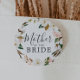 This elegant magnolia mother of the bride bridal shower button is perfect for a modern classy wedding shower. The soft floral design features watercolor blush pink peonies, stunning white magnolia flowers and cotton with gold and green leaves in a luxurious arrangement.