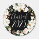Personalized graduation Reese's peanut butter cups featuring the phrase "Class of 2025" in a white calligraphy script encircled by a wreath of white magnolias, blush pink roses, cotton blooms, and green leaves. The class of 2025 Reese's peanut butter cups are perfect for graduation parties!