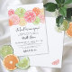 The color palette is a cheerful mix of pinks, greens, yellows, and oranges, bringing a playful yet sophisticated vibe. Perfect for a bridal shower with a citrus theme, this invitation is modern, simple, and full of charm, making it ideal for stylish brunches, outdoor garden parties, or chic gatherings.