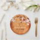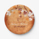 Elegant maple leaves orange fall wedding paper plate that features elegant maple leaves in orange, white and brown colors and swirls on burnt orange grunge stained background. This elegant modern wedding template design is part of a wedding collection or set and is totally customizable. It is perfect for a fall or autumn wedding, bridal shower, reception, engagement, or anniversary party.