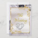 This elegant wedding announcement features a white satin center on a black and white marble background, framed with gold roses and leaves, embellished with a silver scroll heart. Designed to coordinate with the "Elegant Marble, Gold Leaves Frame & Scroll Heart" Wedding Collection. To change details, click «Personalize». To move the text or change the text size, font, or color click «Click to customize further»