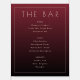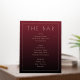 This elegant wedding menu features a deep maroon background with white serif typography, creating a sophisticated and luxurious atmosphere. The layout is simple yet refined, with neatly organized sections for "BEER," "WINE," and "SPIRITS" that highlight various beverage options in a clear hierarchy. Centered alignment and generous spacing enhance readability while maintaining an upscale aesthetic, perfect for a high-end event. The minimalist design focuses on the textual content, ensuring clarity and sophistication without additional decorative elements. Ideal for weddings or formal gatherings, this menu exudes elegance and style.