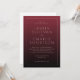 This elegant wedding invitation features a minimalist design with a maroon gradient background that transitions from dark to light, creating a sophisticated and formal atmosphere. The layout is clean and balanced, with centrally aligned text in crisp white serif fonts that emphasize clarity and elegance. Customizable placeholders allow for personalization of names, dates, and locations, making it perfect for couples seeking a classic yet modern look. The overall mood is one of refined simplicity, ideal for an upscale wedding celebration.