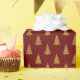 Elegant burgundy maroon wine and gold glitter cute Christmas trees pattern gift Wrapping Paper.