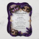 Invite guests to an unforgettable night of mystery and celebration with this luxurious Masquerade Quinceañera invitation. Designed in deep royal purple and metallic gold tones, this card features ornate Venetian carnival masks, glittering feather accents, and rich baroque patterns. Perfect for a dramatic ballroom celebration or masquerade ball theme, this invitation sets a regal tone for a sweet fifteen event filled with elegance, tradition, and enchantment.