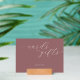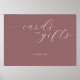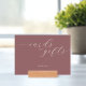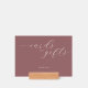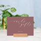 This wedding tabletop sign features a minimalist design with a solid mauve background and elegant cursive typography that reads "cards and gifts," followed by a simple "THANK YOU" in all caps. The layout is clean and modern, emphasizing sophistication through its use of off-white text on a muted backdrop. Perfect for expressing gratitude at your event, this sign combines understated style with a warm tone, making it an ideal addition to any wedding celebration.