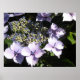 Beautiful hydrangeas in mauve with delicate blooms and dark green foliage.