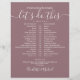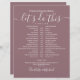 This simple elegant mauve and white wedding schedule-timeline can be personalized with your wedding details in modern white lettering. Designed by Thisisnotme©