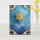 Gold Star of David with exquisite gold details against a blue background; the greeting is "Mazal Tov" on the front. The inside has been left blank for you to personalize this elegant card. Suggested for weddings, birthdays, bar mitzvahs, bat mitzvahs, and other special occasions or holidays.