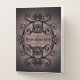 A beautiful set of folders with a semi dark Gothic medieval look design with a pinkish plum tinge printed on both sides. An ornate black scroll work design frames your name and text lines. All the wording is on both sides for right or left handed use. If there is too many lines of text, you can easily remove the wording. I think these would be great for professionals, as well as back to school for students.