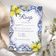 Celebrate your special day with this cute Mediterranean-style wedding design, featuring traditional Italian tiles adorned with vibrant lemons and lush greenery. Perfect for a rustic, coastal, or Amalfi-inspired wedding, this elegant design captures the charm of Southern Italy with its intricate patterns and fresh citrus elements. Fully customizable with your wedding details, this cute Italian design adds a touch of Tuscan romance to your celebration. Ideal for destination weddings, summer ceremonies, and Italian-themed receptions. For complementary products please see the collection of this design.