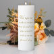 This elegant memory candle serves as a special tribute to cherished family members who have departed. It is designed to be placed on a table or near an alter to honor family members who are no longer with you and unable to be present at this most special occasion. This elegant design blends a combination of script and serif typefaces to highlight certain words and add a special literary accent to the text layout.