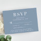Classic and traditional dusty blue wedding RSVP enclosure card featuring "RSVP" in elegant white typography and your personalized menu options.