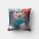 Elegant Mermaids Embracing Underwater Blossoms Throw Pillow