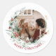 Elegant Merry Christmas wreath photo Classic Roun Classic Round Sticker