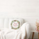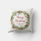 Watercolor red-green berries and branches Christmas wreath family throw pillow. Customizable!