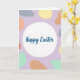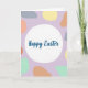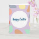 Designed with a large white circle centered on the front, this Easter card draws your eye straight to a short greeting written in smooth blue lettering. The rounded strokes feel like a gentle note between close friends, as if the words were chosen with extra care. Around the circle, a soft lilac background sets a calm spring setting, with scattered organic shapes that resemble polished stones. Those shapes appear in pale yellow, light coral, muted slate gray, and mint green, adding a light, friendly energy without crowding the message 🌷. The text sits neatly within the white circle, centered and easy to read, with plenty of open space around it. Even, diffused lighting keeps the pastel colors soft and airy, while the mix of curved shapes adds motion like a quiet, shared stroll 🐇. The irregular pastel forms float across the lilac field in varied sizes, framing the central circle like a loose wreath.