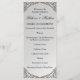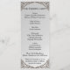 A beautiful, metallic-look silver wedding program featuring a very decorative faux-metal lacework frame at the top and bottom. All details on both sides of the card can be easily customized at the Personalize the Template link above.