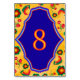 Elegant Mexican vibrant yellow blue wedding Table Number