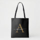 Elegant Minimal Black Gold Monogram Name Initial Tote Bag