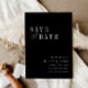 white script lettering black wedding save the date wedding card with qr code. The text and colors can be edited.
