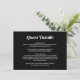 Elevate your modern and stylish wedding with our stunning guest details enclosure card. The gorgeous bold white calligraphy and classic lettering on a black background make it a perfect choice for formal weddings. You can also change the colors of the text and background to match your theme. Don't miss out on adding this elegant touch to your special day and informing your guests of what's to come. Order today!