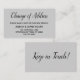 Keep your friends and family up to date with your new address using these simple, elegant enclosure cards. Versatile notes read "Change of Address" on the front and "Keep in Touch!" on the back, using a modern, casual, handwritten script font. Use the template fields to add all your details to personalize this design for your own use. You can change the background to any color you wish. Likewise the fonts can be changed if you wish to edit the design a bit more.