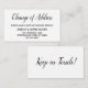 Keep your friends and family up to date with your new address using these simple, elegant enclosure cards. Versatile notes read "Change of Address" on the front and "Keep in Touch!" on the back, using a modern, casual, handwritten script font. Use the template fields to add all your details to personalize this design for your own use. The black type was placed over editable white; you can change the background to any color you wish. Likewise the fonts can be changed if you wish to edit the design a bit more. // Designed by Melody Watson for Paper Muserie.