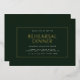 Elegant and minimal Wedding Rehearsal Dinner invitation card with real gold foil, clean layout and typography on dark green background.