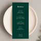 This striking and luxurious Elegant Minimal Emerald Green Wedding Menu is perfect for couples seeking a minimalist aesthetic that exudes sophistication and offers a touch of class and modernity. The bold yet simple emerald green background lends a unique, vibrant charm to the menu, making it stand out effortlessly. Beautiful calligraphy script typography adds a high end flair that pairs perfectly with the streamlined layout. Stylish and refined, this menu embodies both simplicity and elegance, aligning perfectly with any modern wedding theme. Customize background color, text font, size and placement to your liking using the design tool. For matching items, visit the Emerald Green Modern Minimal Wedding invitations collection.