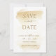 Elegant and simple, Wedding Save the Date card with beautiful golden yellow watercolor background with brush strokes and modern hand written calligraphy details. Modern, elegant minimalist style. Note: typography is not in real foil, but rather print in a golden hue, "Save", "Date" and "and" made with faux foil image. Back in same watercolor background from the front. Part of our "Elegant Calligraphy Minimalist Wedding Stationery Wedding" collection.